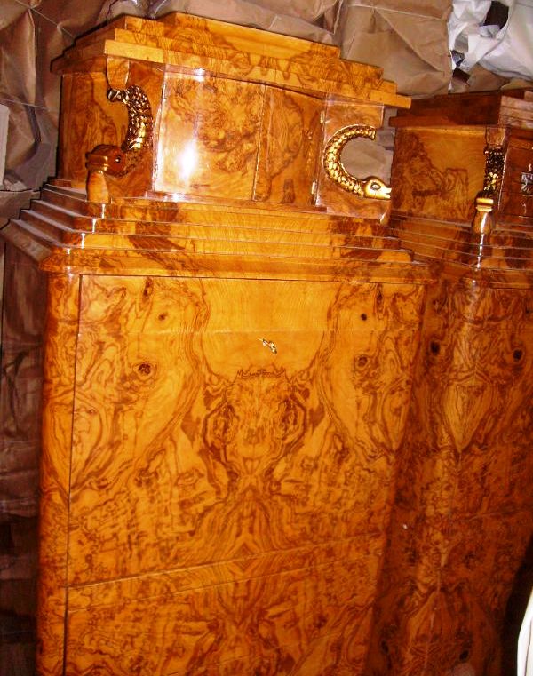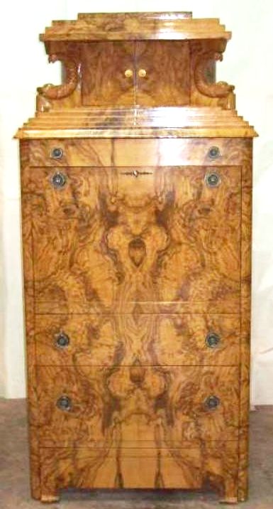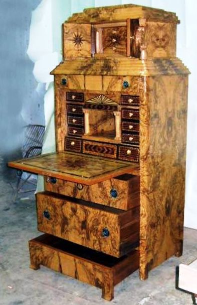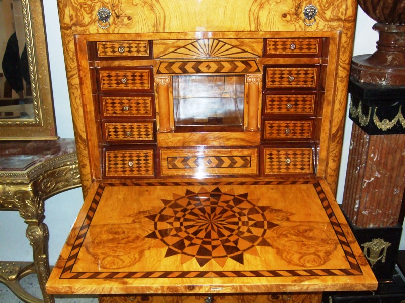 Amazing handmade Biedermeier secretary with unique finishing and the best veneers ( Olive Root Veneers ) and Beach wood.
