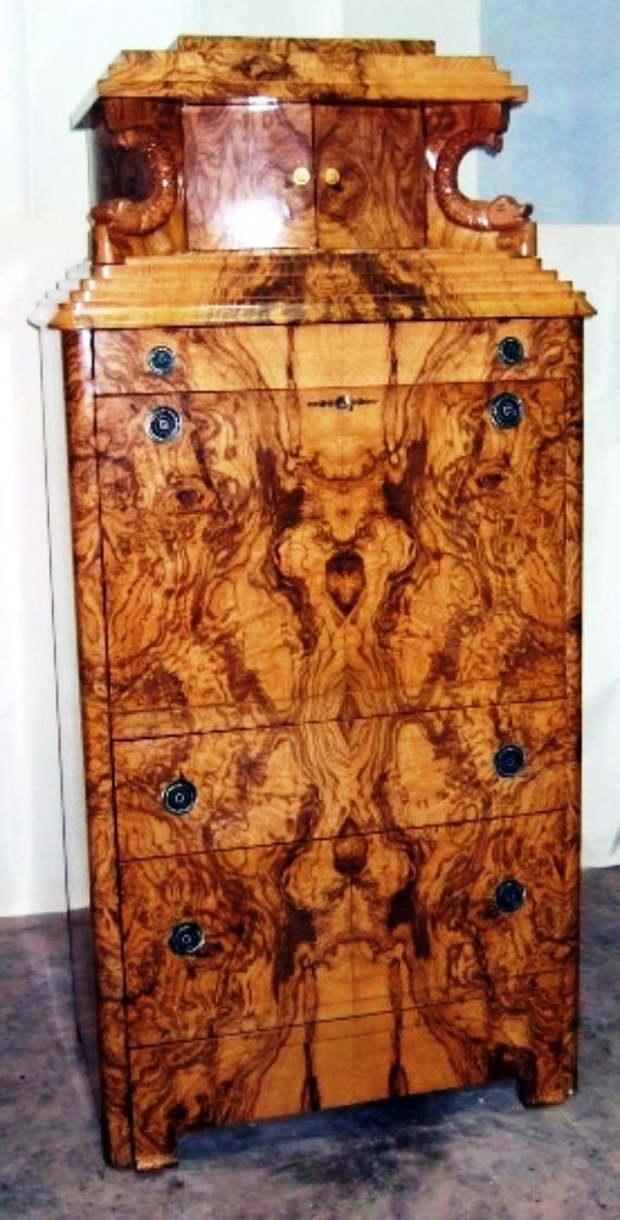 It personalize the romanesque style imitating a temple in the middle and useful for office use as a bureau desk with 17 drawers.