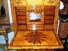 The top part two doors contain three drawers, then a large drawer, then the central part which opens a sliding panel can be used as a desk, this part finished in marquetry and houses ten drawers and in the lower part three large deep drawers which enable a unique use for housing enormous items inside.
