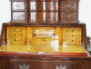 The section in question is with two levels the lower with drawers, the upper with doors and scrolled flanks behind them fully fitted interior with 11 small tills, a pigeon hall and 1 small door.