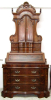 The lower section is very well figured, concealing a writing surface and a bank of 7 short drawers, two doors and a pigeon hall.