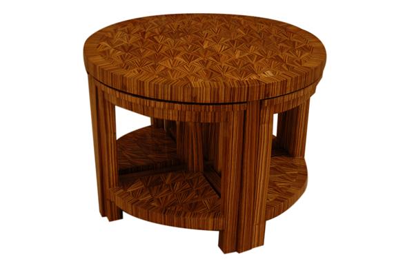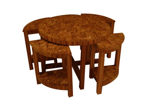 Art Deco Center Table / Mother Table, with 4 chairs hidden inside it, inlaid with the finest veneers, the 4 chairs can be used as well, as four corner tables.