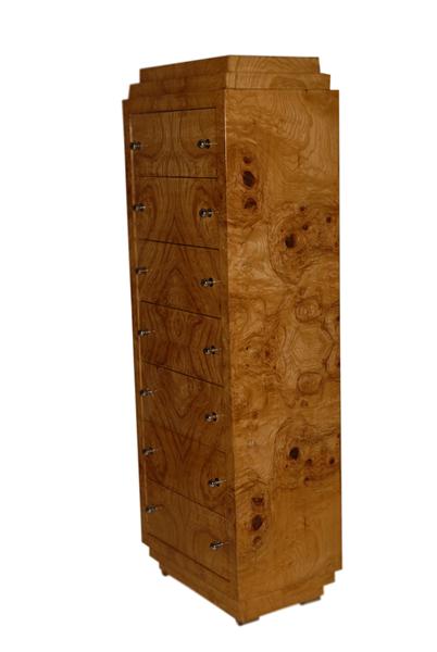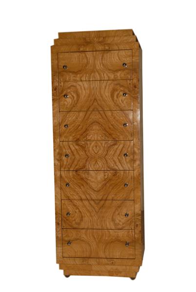 Art Deco style chest of drawers with seven large drawers inlaid with the beautiful olive root veneer. REF: AZ476
