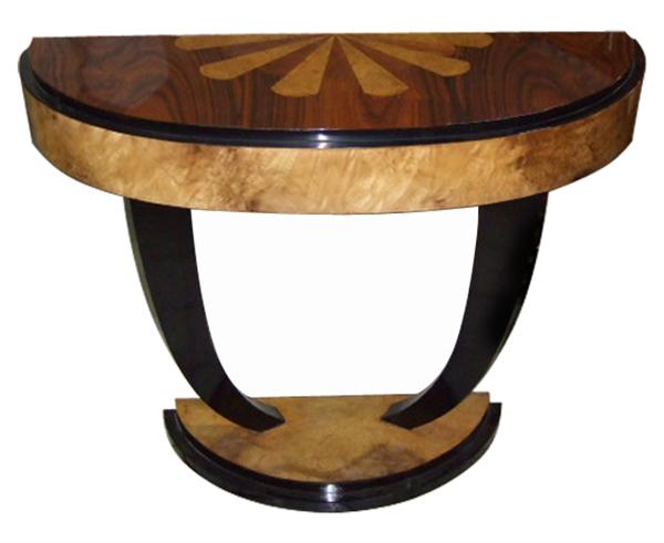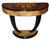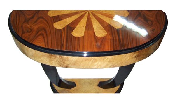 Art Deco side wall console table, ebonized curved legs with marquetry and veneer inlay. REF: AZ511