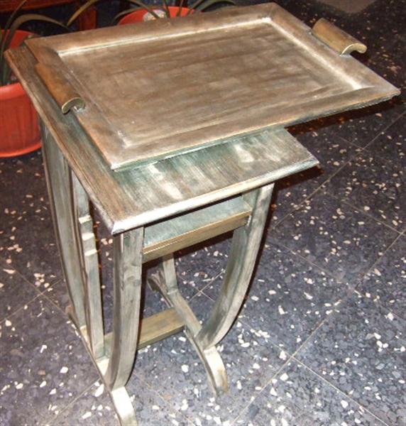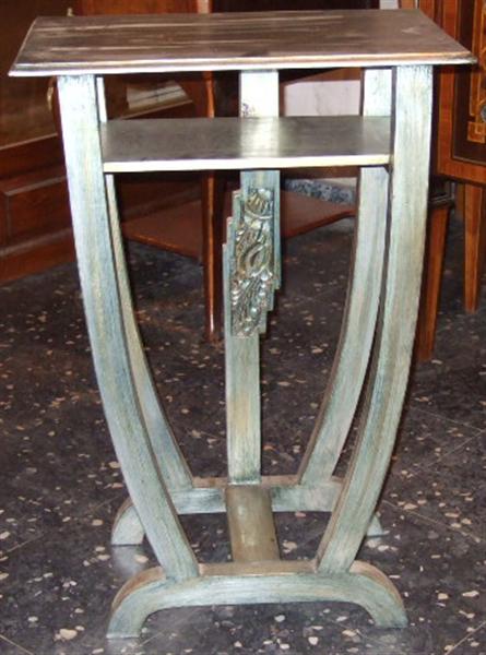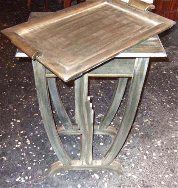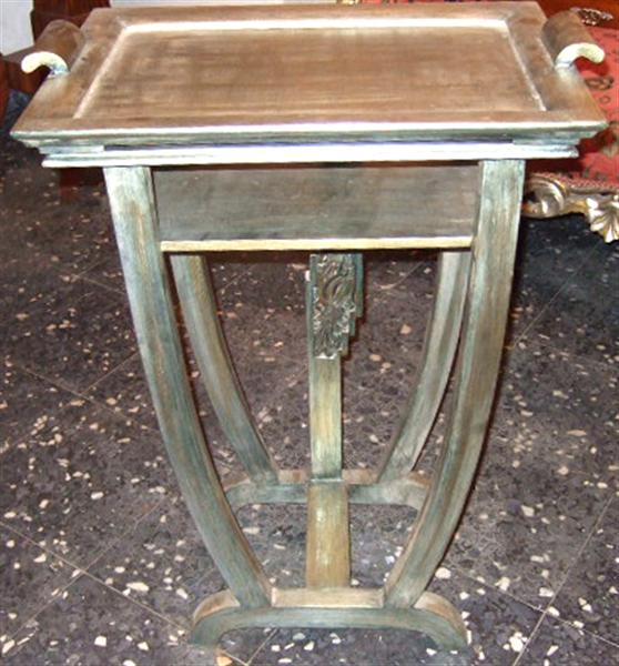 Art Deco Side Serving Table with extra tray on top, silvered, finished in antique look, and carved.