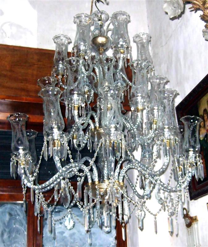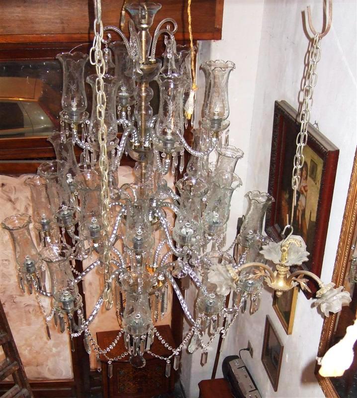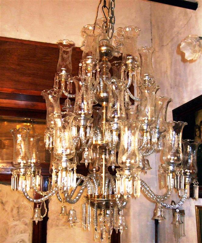 Sizable 26 twisted pure glass arms, bulbs crystal and glass Georgian Style Waterford chandelier suitable for entrance rooms with yards of beaded crystals and fine quality glass bells.