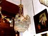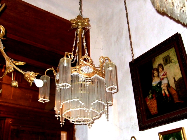 French ormolu body chandelier with nice delicate glass trimmings, crystal beads and ormolu chains supports surrounding the central rod pendant.