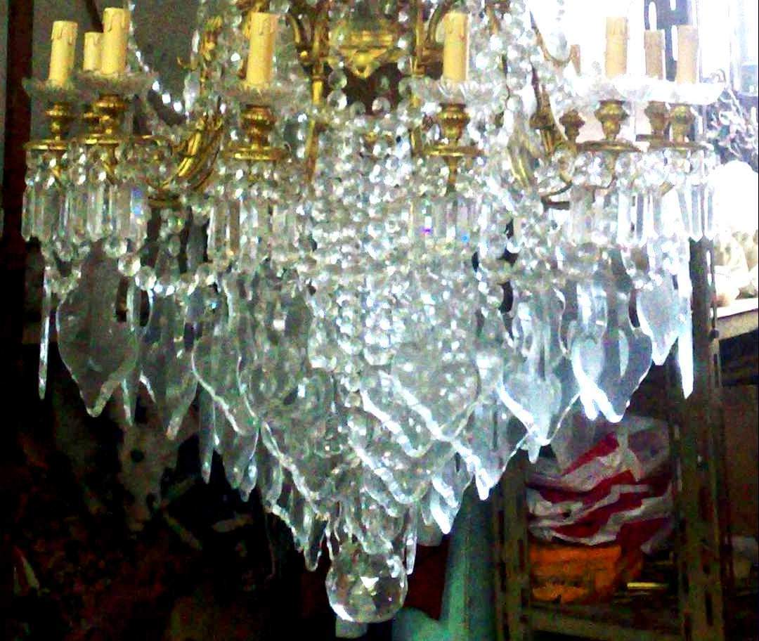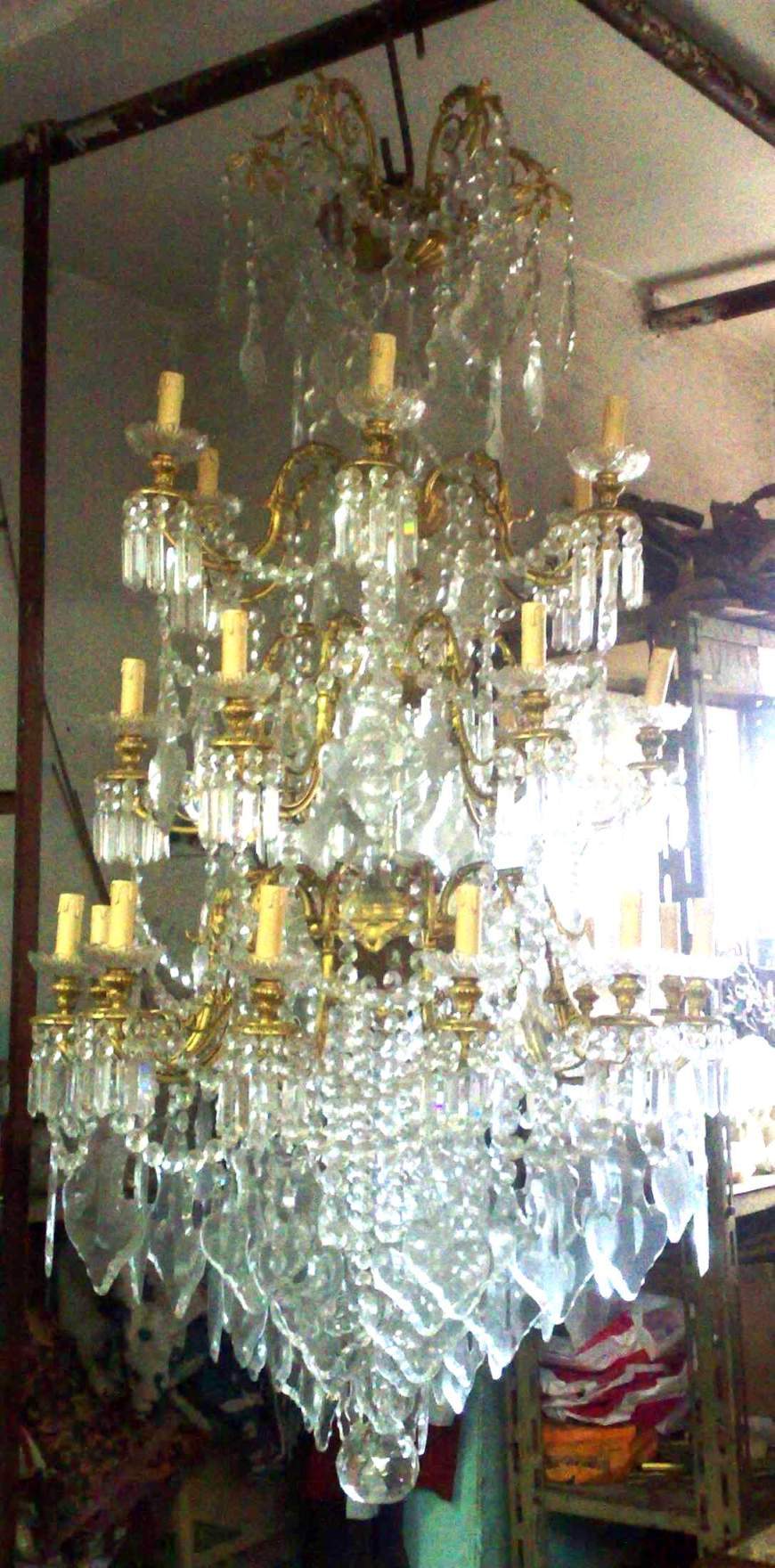 Large Palatial Chandelier 24 Arms - for high ceiling houses, ormolu body and arms, full of beads, crystals and fine glasses - Extraordinary in Reality.