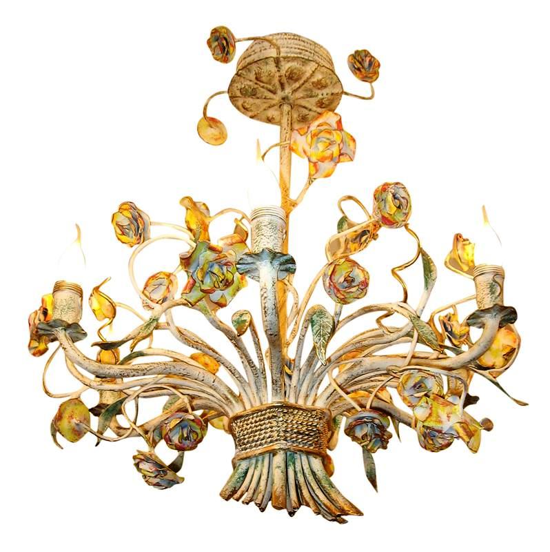 Colored iron flower basket 6 lamps handmade iron chandelier