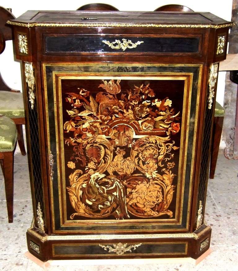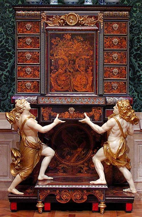 This design of marquetry is copied from the important cabinet on stand ca. 1680, attributed to Andre-Charles Boulle.