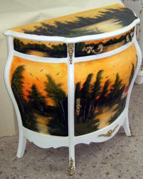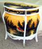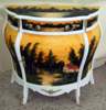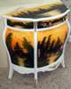 Distinguished French Louis XV and Vernis Martin Style Bombé Commode painted in white color and professionally hand painted through our artists to represent this extraordinary landscape shown. The commode is ornamented with fine gilt-ormolu fittings, large from inside, with one drawer and one door.