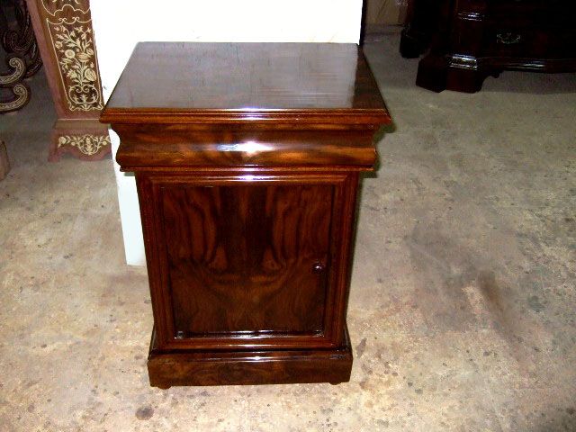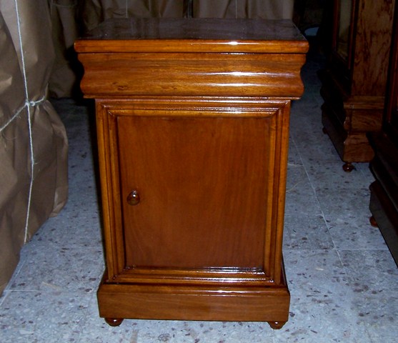 Art deco style comodini, veneer inlaid, with two hidden drawers and one door and raised on bun feet.