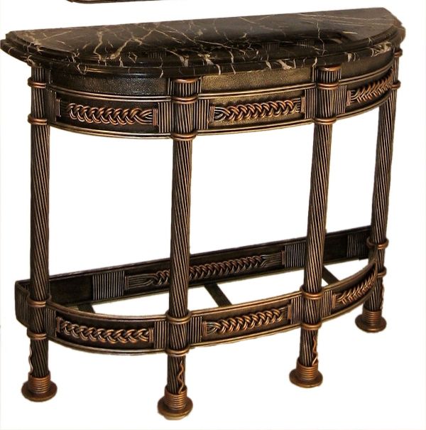 Wrought Iron knot console table with marble top and mirror.