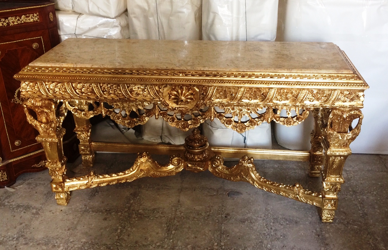 French Louis XIV style carved and gilded console table