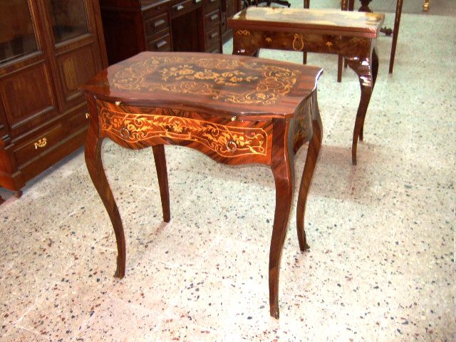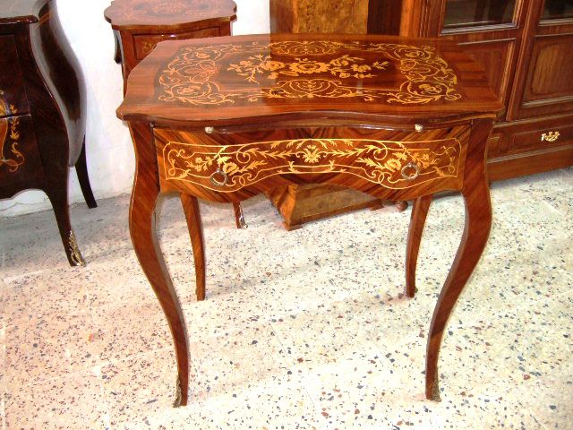 Delicate French Louis XV style lady's desk with one drawer and extra sliding writing panel ornamented with beautiful foliate marquetry inlays.