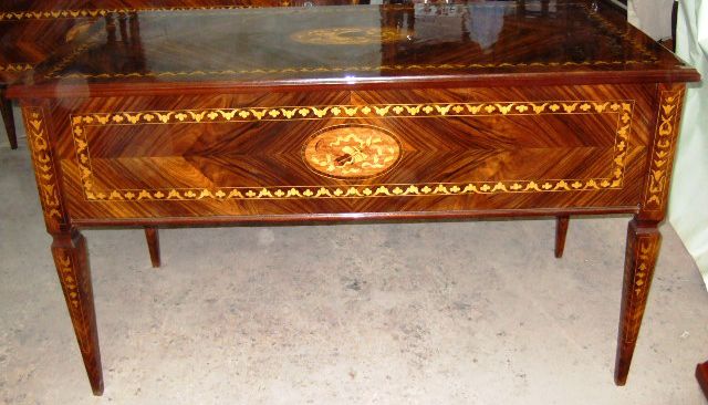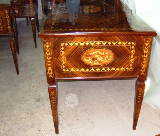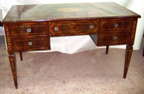 Veneer inlaid and marquetry Italian Louis XVI style desk with five drawers. REF: AZ107