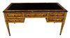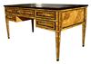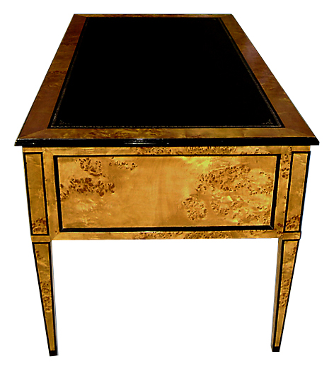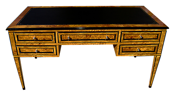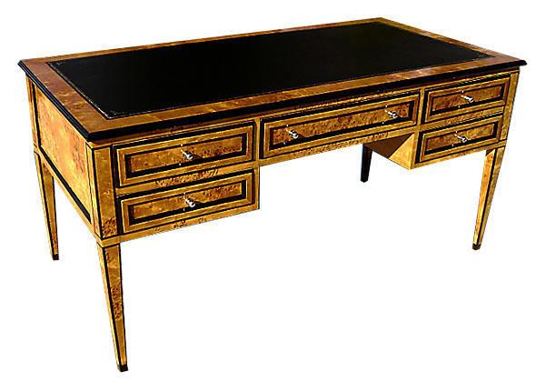 Exquisite Italian Lombard style olive root veneered five drawers large bureau plat applied with leather top. REF: AZ131