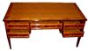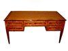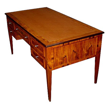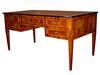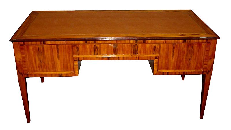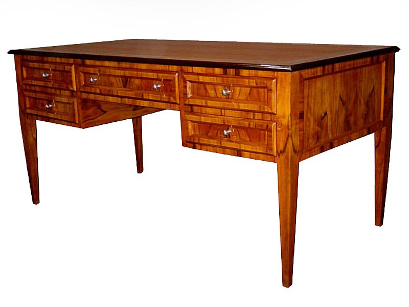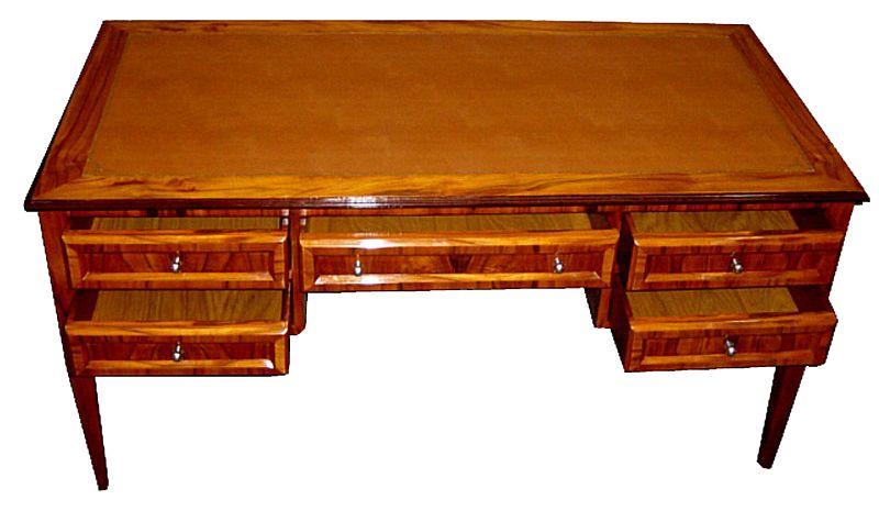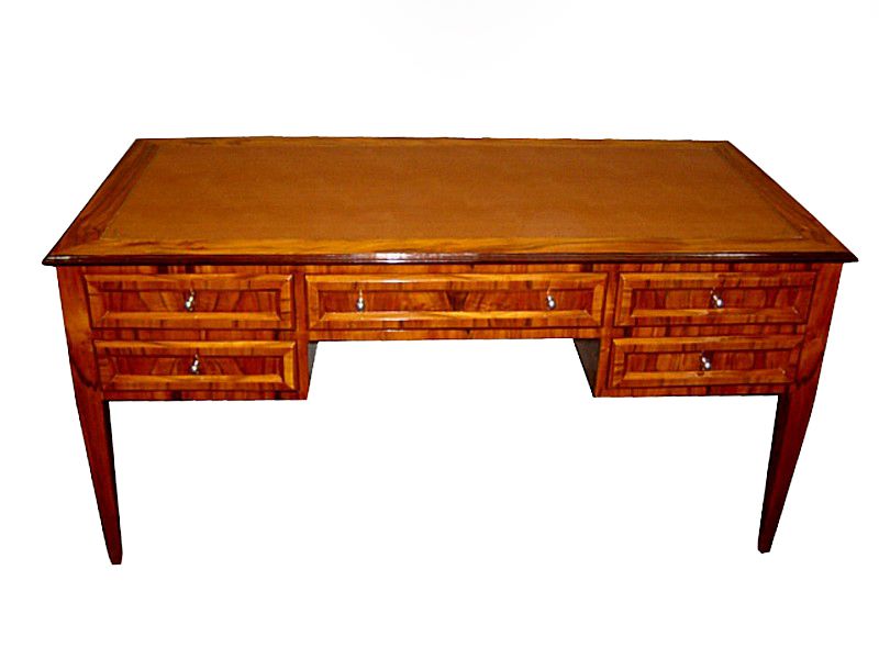 Large veneer inlaid Italian style five drawers leather top desk. REF: AZ133