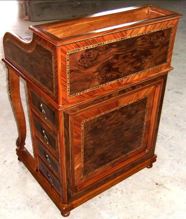 Superb quality Victorian style piano top davenport with a rising top contains four pigeons holes and three central drawers, the main desk body contains a sliding writing surface and four drawers, the main body have eight drawers on the sides, the davenport inlaid all over with the finest veneers.