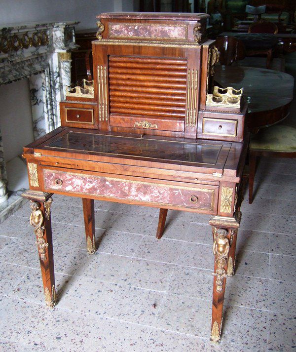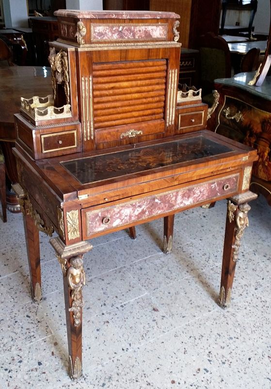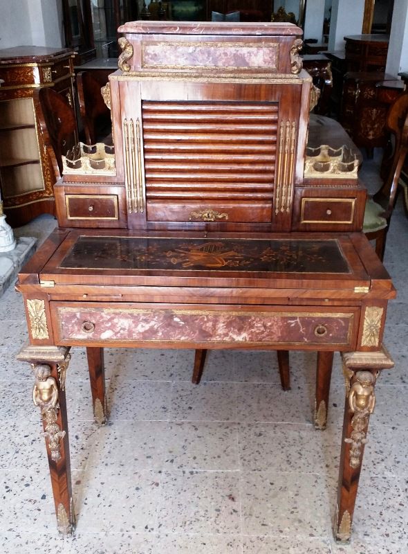 Ormolu, marquetry and marble Antique Louis XIV desk