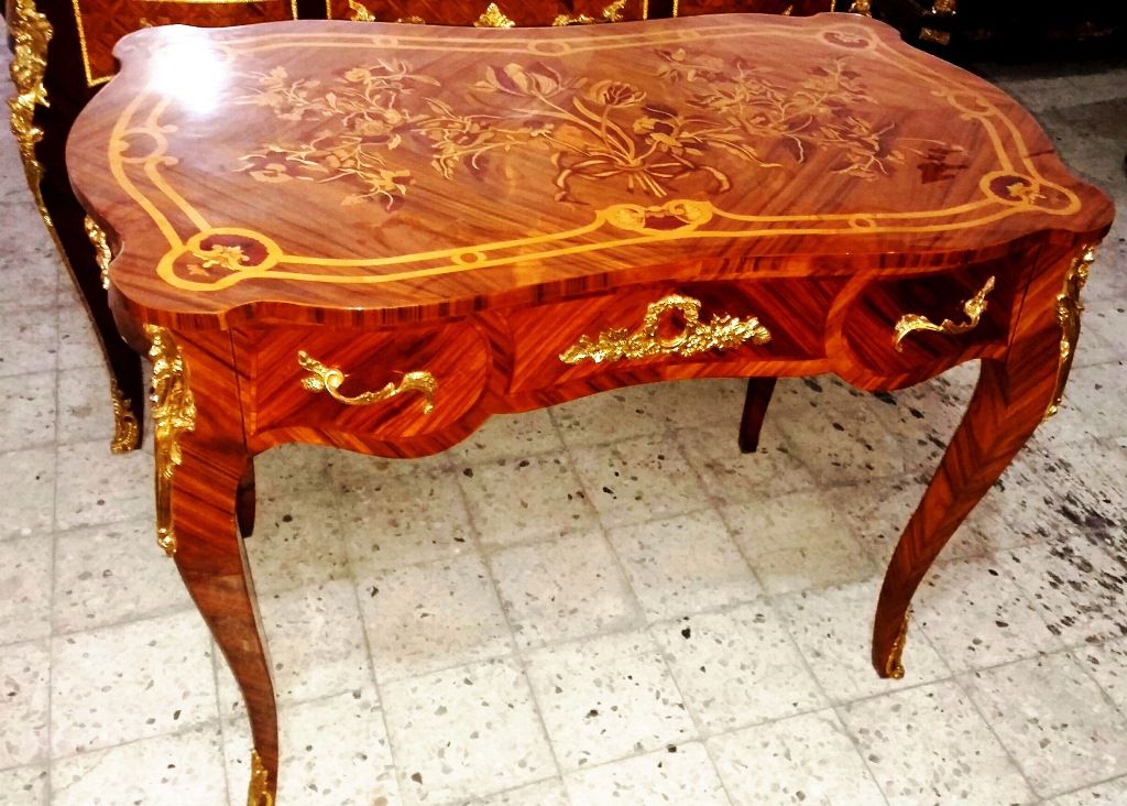Fine French Louis XV style ormolu mounted Lady Desk, with three drawers, inlaid with fine foliate marquetry and veneer inlays. REF: AZ174