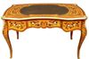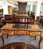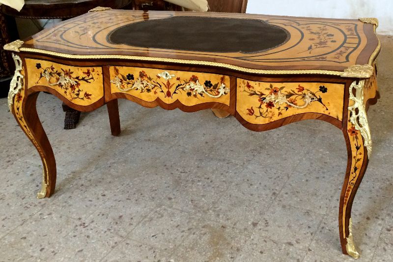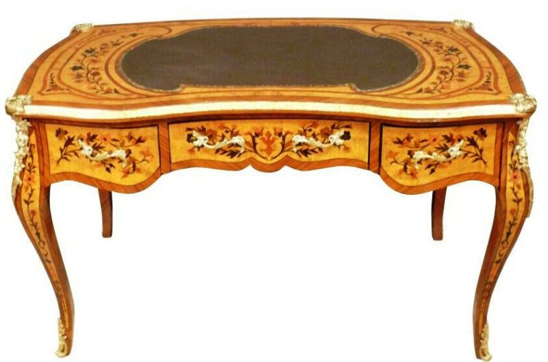 Ormolu mounted Louis XV style marquetry inlaid three drawers desk, with central leather top with matching classic office chair. REF: AZ184