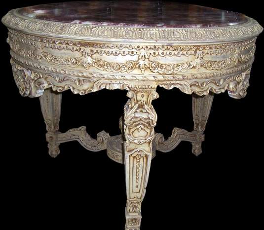 Rounded Carved Center Table finished with Ivory White Patina derived from the Louis XVI Style & carvings in the manner of the 18th century REF: A245612ZR H : 82.5 cm |