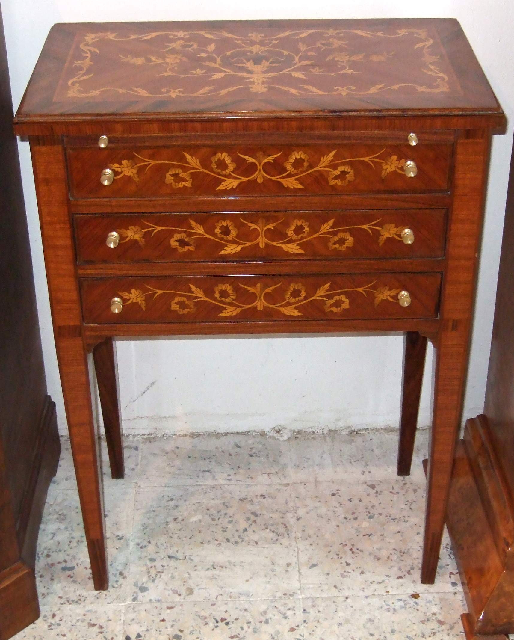 Three Drawers & one sliding writing board Veneered Walnut Side Table