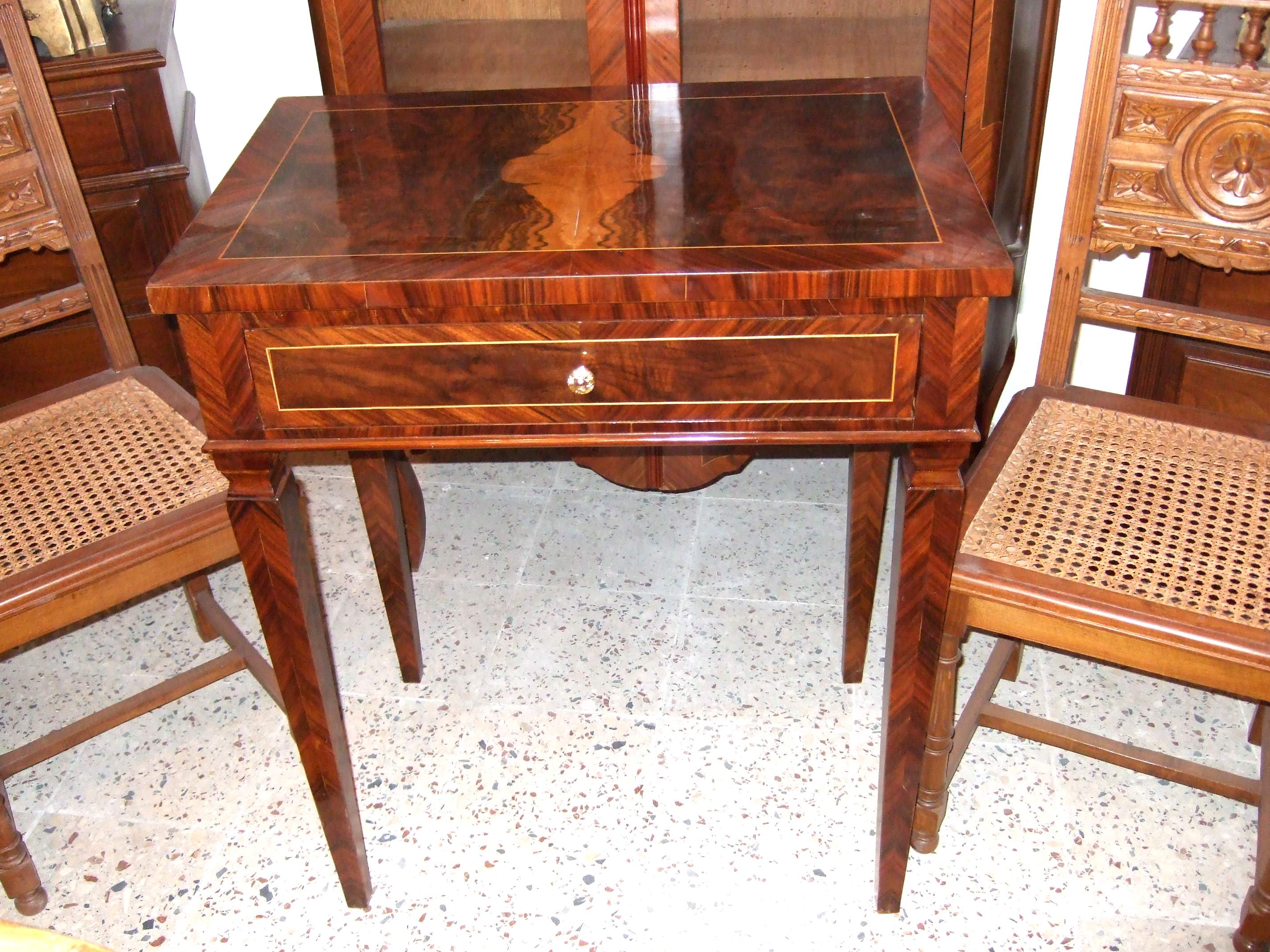 Beautiful veneered Louis XVI side table with one drawer