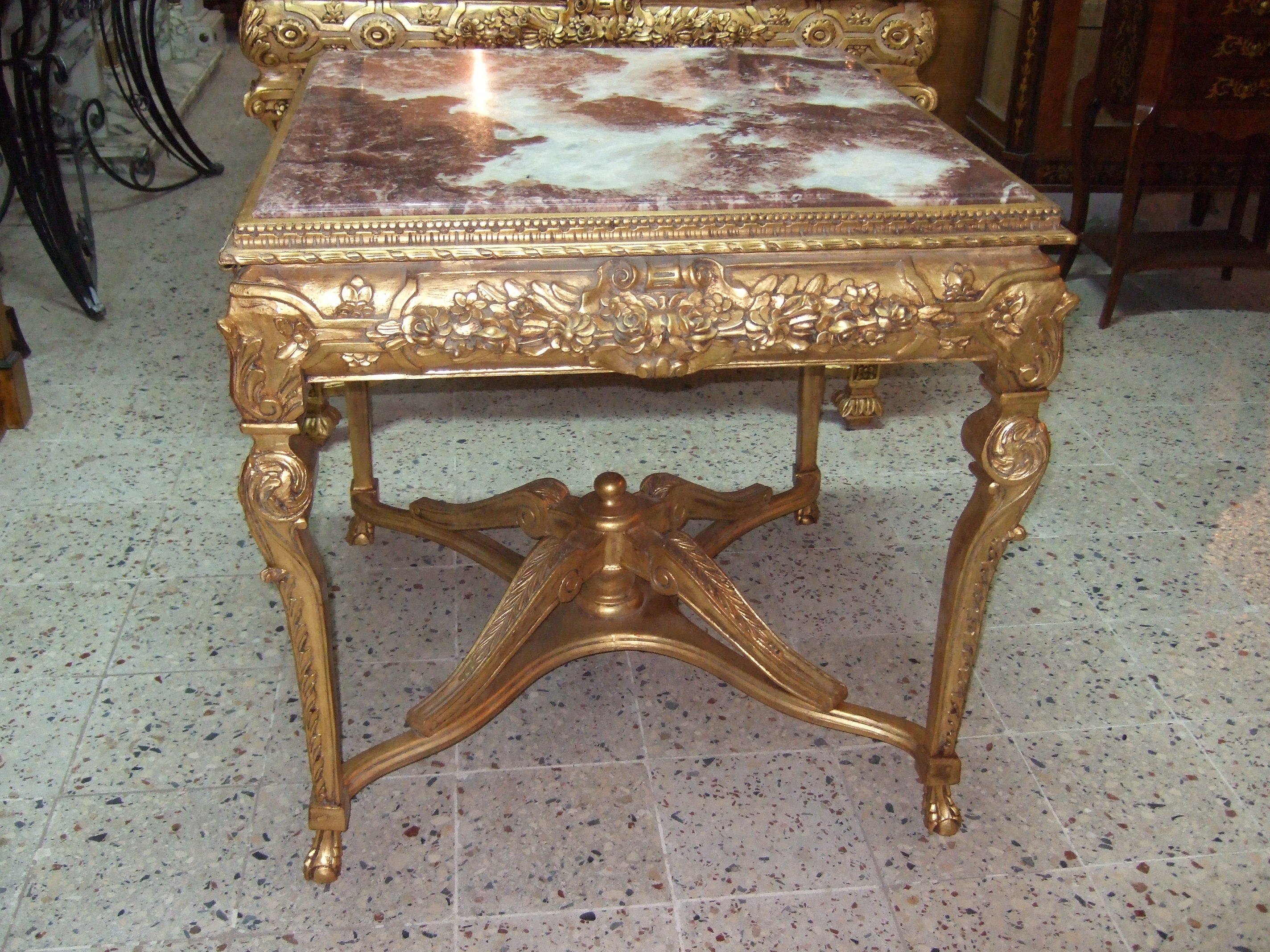 French Style Gilded Center Table with carved X Stretcher