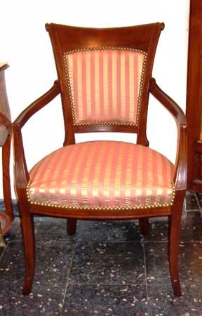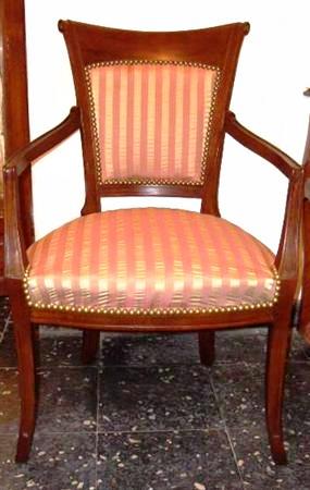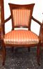 Italian Empire style office arm chair upholstered with damask fabric, inlaid with veneers, matt finish, fabric surrounding with nails or strips is per client request. REF: A321D
