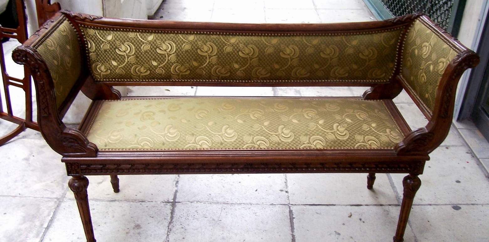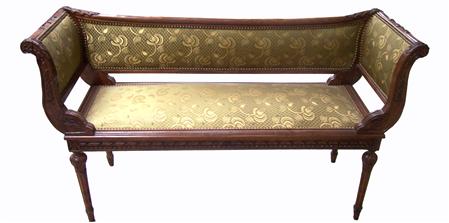 Delicately and beautifully carved and upholstered French Louis XVI style settee. REF: A365