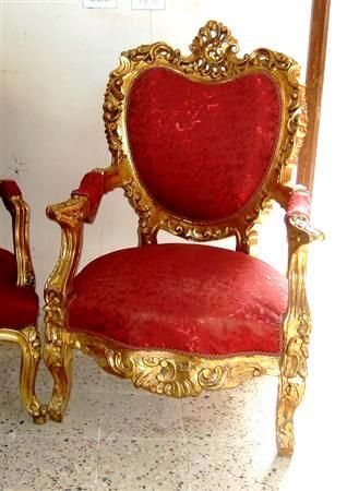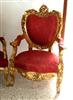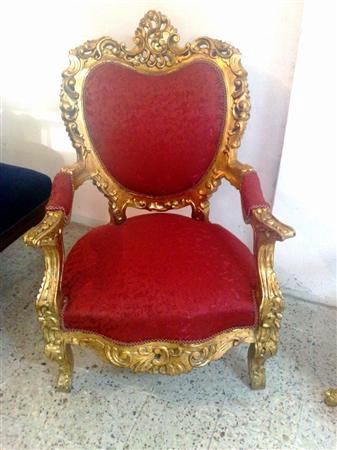 Throne arm chair, French style, carved and gilded upholstered with ornamented red damask fabric. REF: A368M