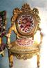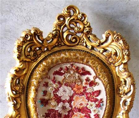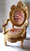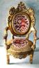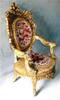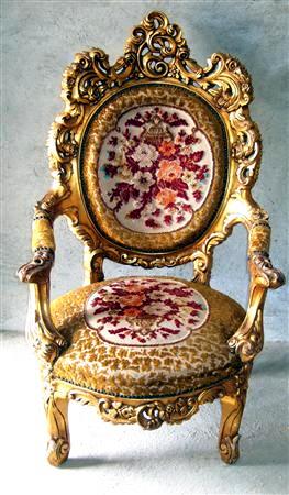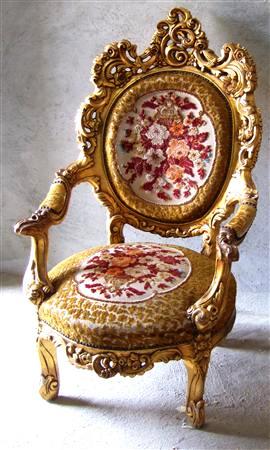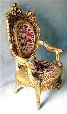Old hand made throne arm chair, elaborately carved and gilded on the french style full of floral ornamentation carvings-old fabric. REF: A370