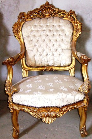 Antique unrestored French style throne arm chair, full of beautiful carvings and gilded with aged gilding - to be re-upholstered per request. REF: A370W