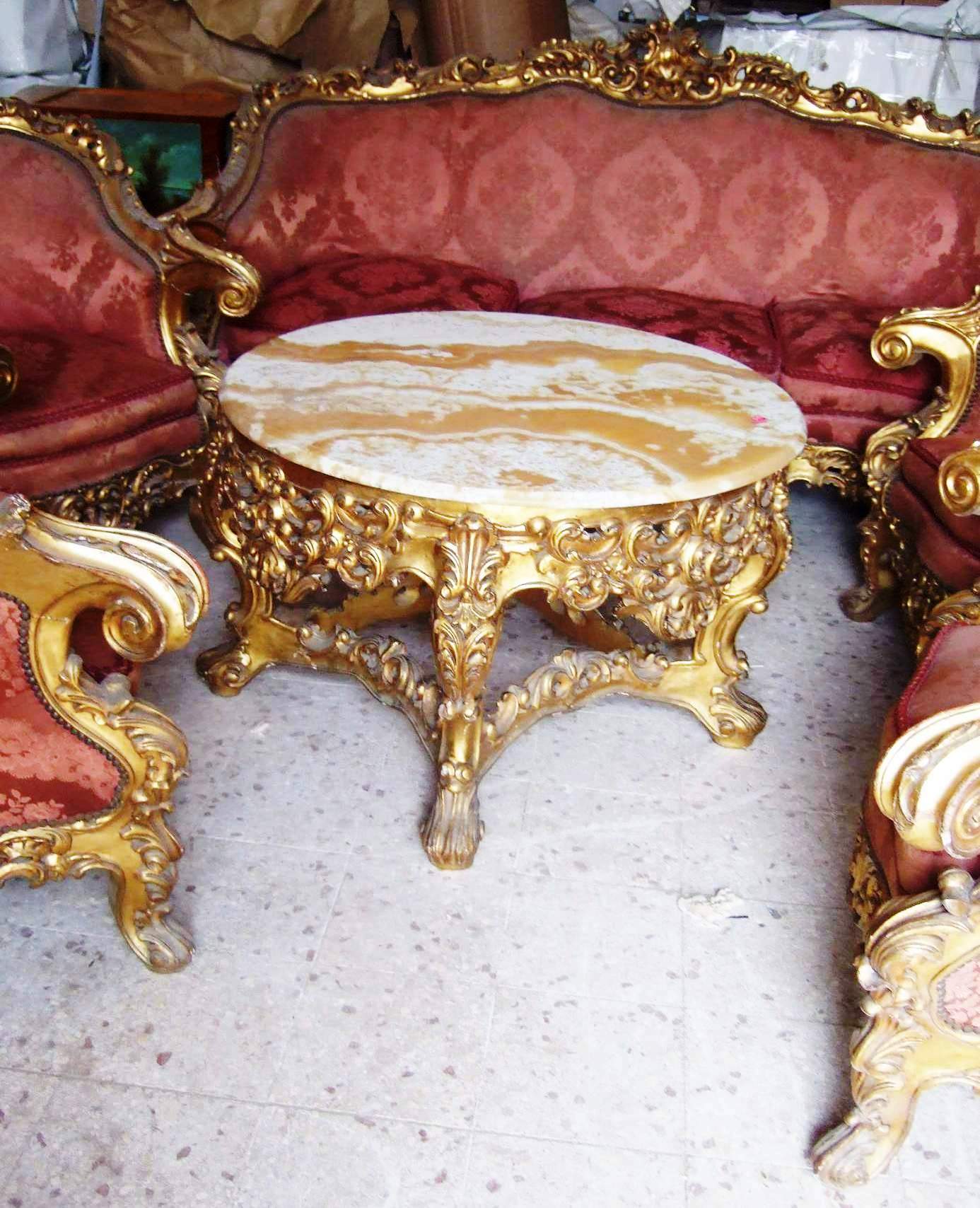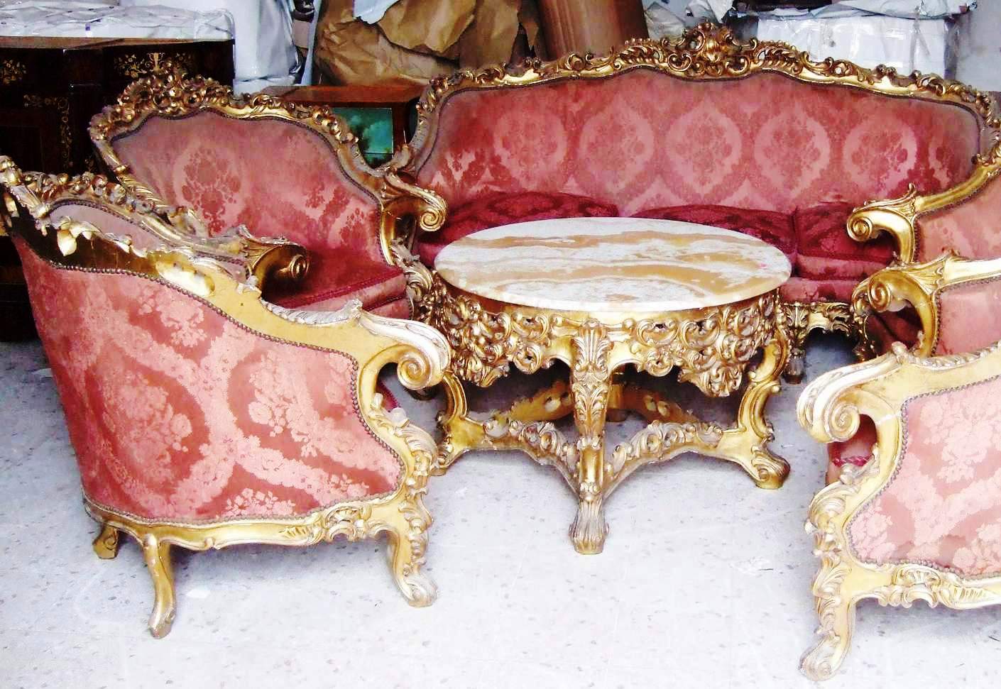 Old, Royal Louis XV style french salon set of six pieces - magnificent in details, full of carvings and gilded with french gold foils,