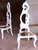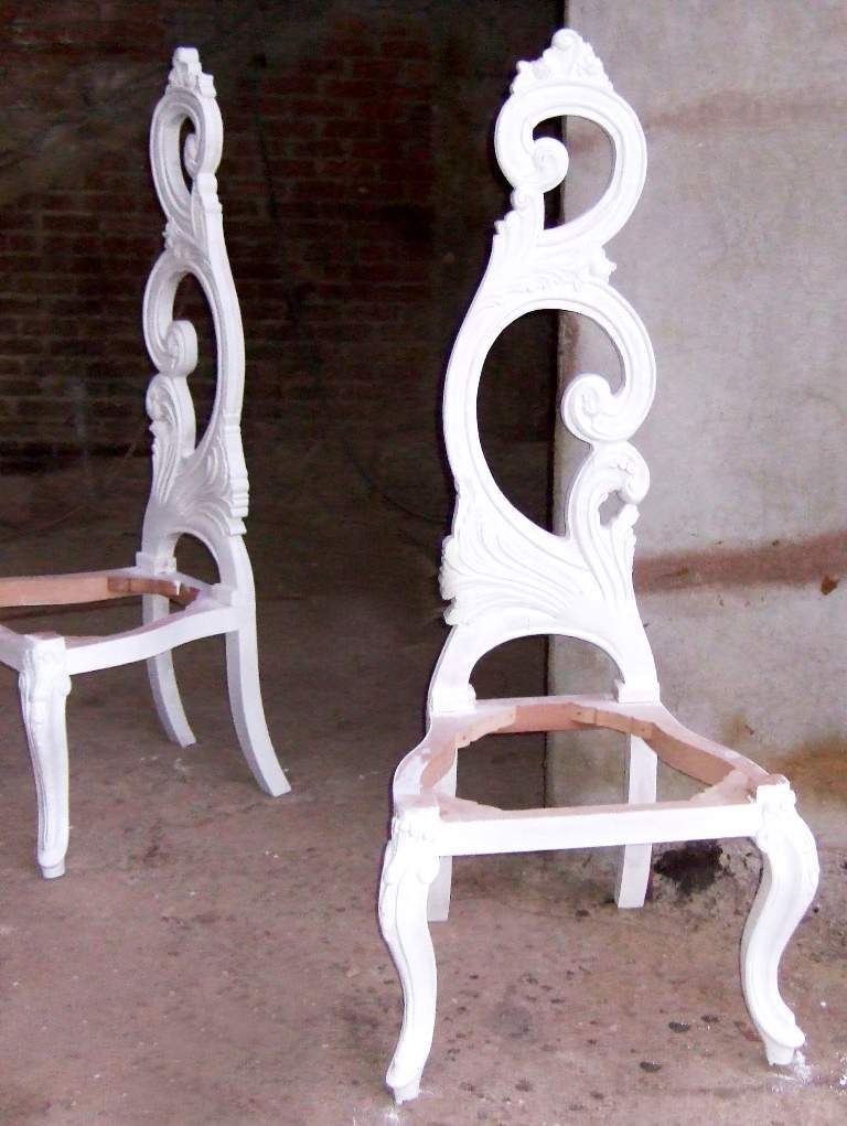 Ornate occasional high back chair with scrolls and foliate motifs, wide seat and narrow tall back, back rest is inset with two upholstered pads, very beautiful in shape - unfinished - finishing option available per request - upholstery options available per request.