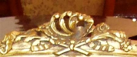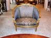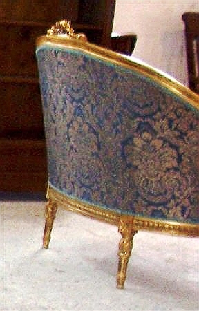 Elegant French Louis XVI style love seat / canapé, carved & gilded with french gold foils, upholstered with beautiful ornamented royal blue damask fabric. REF: A307