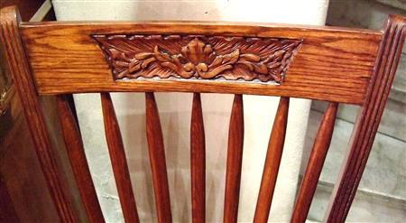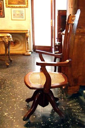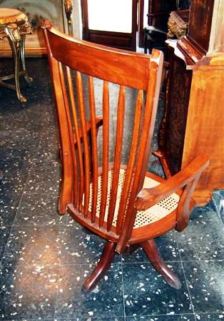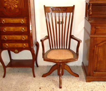 English style Office / desk rolling arm chair, with carved back and caned seat fixed on a rolling mechanism, rest on wheels. REF: A308