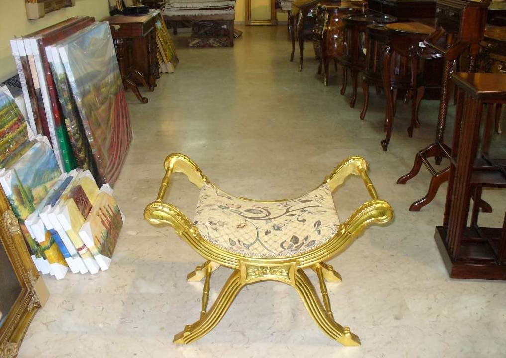 Elegant French style banquette / dresser chair, carved and gilded with french gold leaves - picture without seat cushion. REF: A348