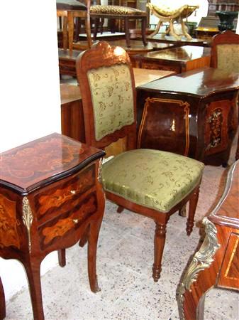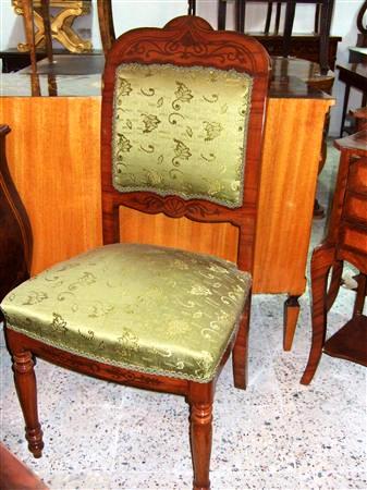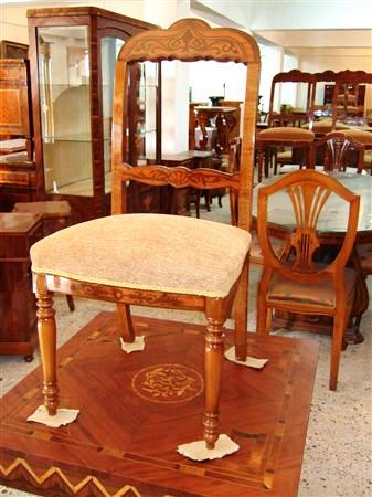Beech wood inlaid and veneered dining chair imitating the English style.