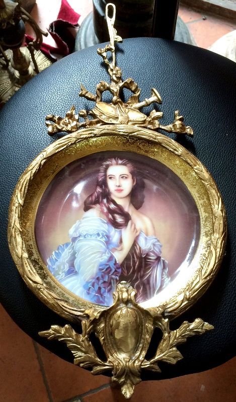 Wall mounts décor - ormolu and sevres porcelain painted miniature wall plaque / plate.