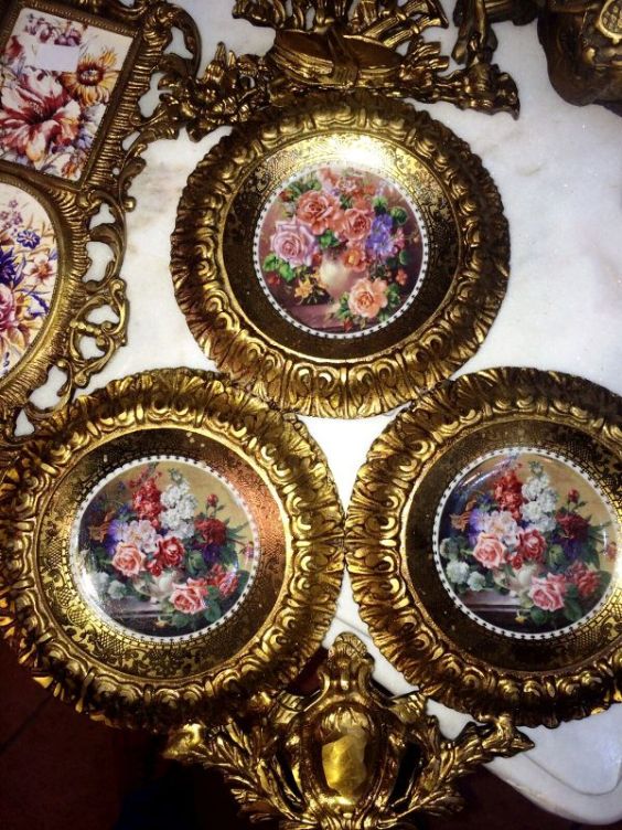 Wall mounts decoration - ormolu and sevres porcelain painted miniature wall three plate plaques.